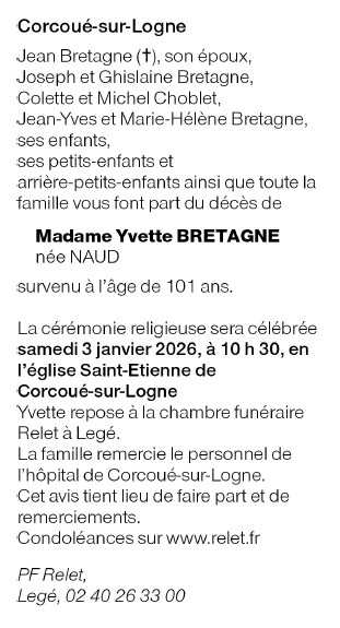 Overleden te Corcoué-sur-Logne (44650, Frankrijk) op dinsdag 30 december 2025 op 101-jarige leeftijd