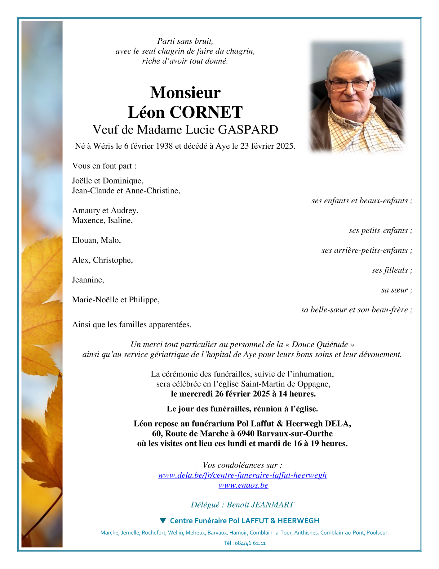 Died in Aye (6900) on 23 February 2025 at the age of 87 years