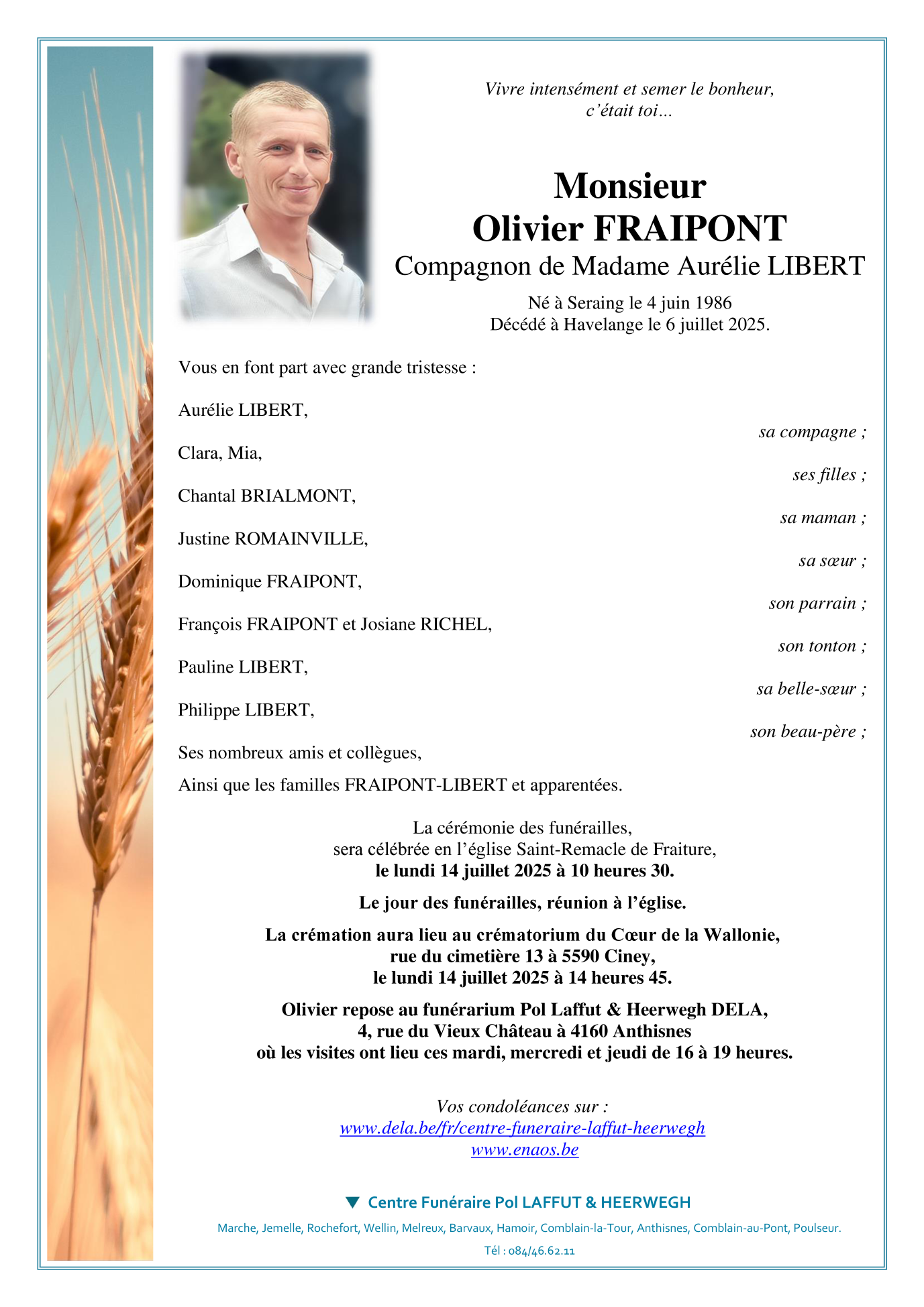 Overleden te Havelange (5370) op zondag 6 juli 2025 op 39-jarige leeftijd