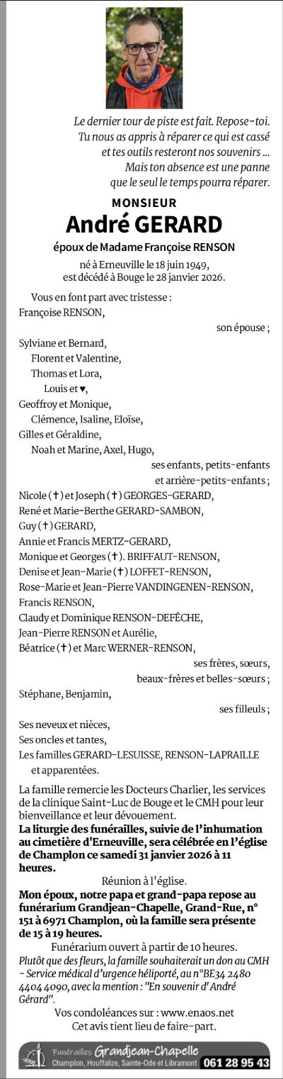 Overleden te Bouge (5004) op woensdag 28 januari 2026 op 76-jarige leeftijd