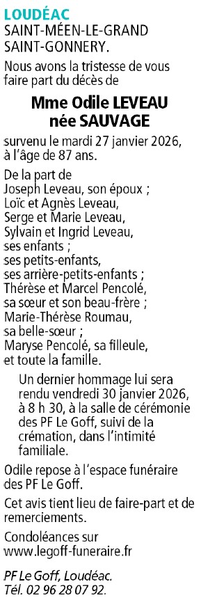Décédée à Plérin (22190, France) le mardi 27 janvier 2026 à l'âge de 87 ans
