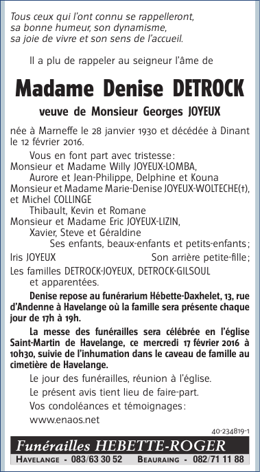 Madame Denise DETROCK