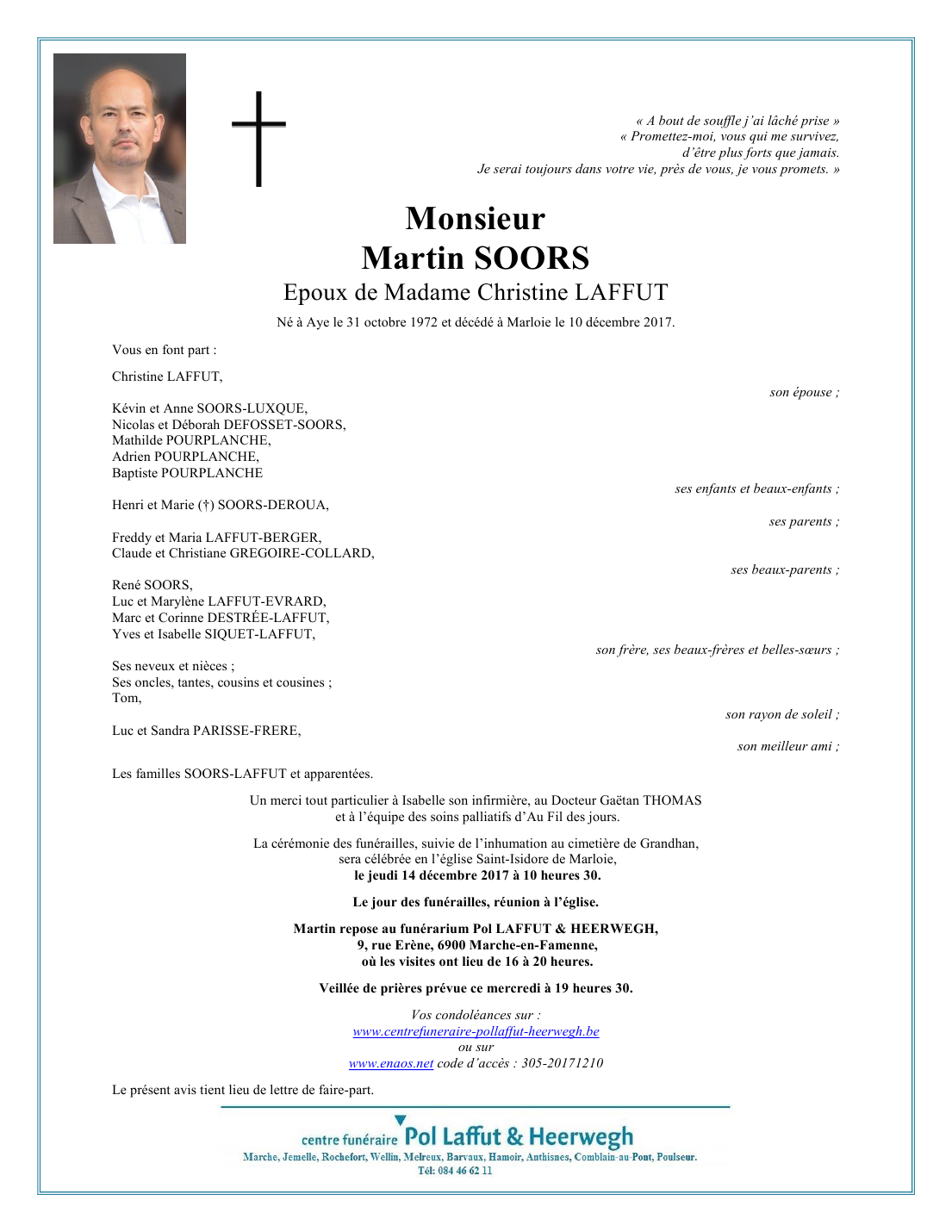 Décédé à Marloie (6900) le dimanche 10 décembre 2017 à l'âge de 45 ans