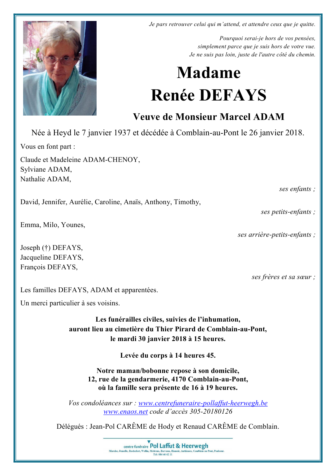 Madame Renée DEFAYS