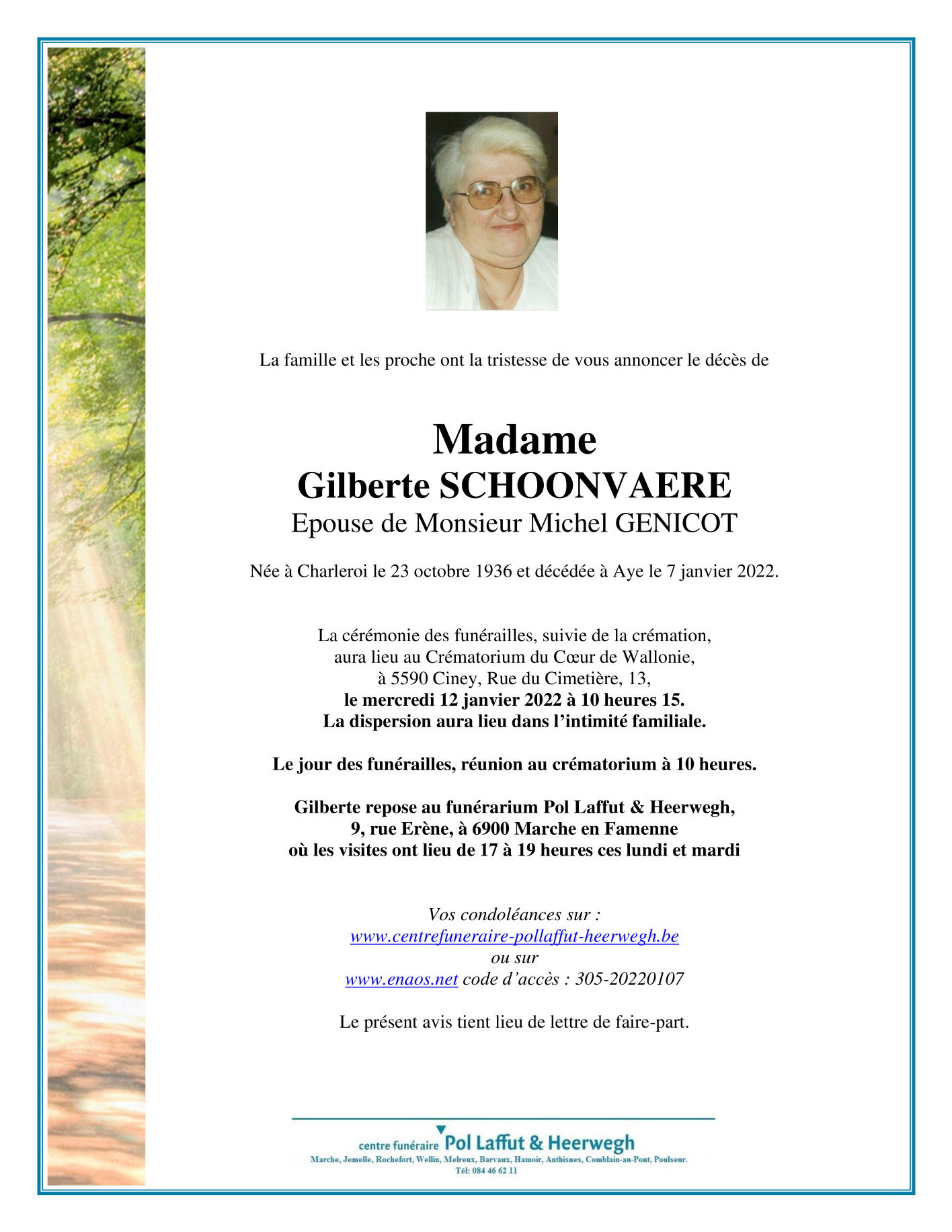 Décédée à Aye (6900) le vendredi 7 janvier 2022 à l'âge de 85 ans