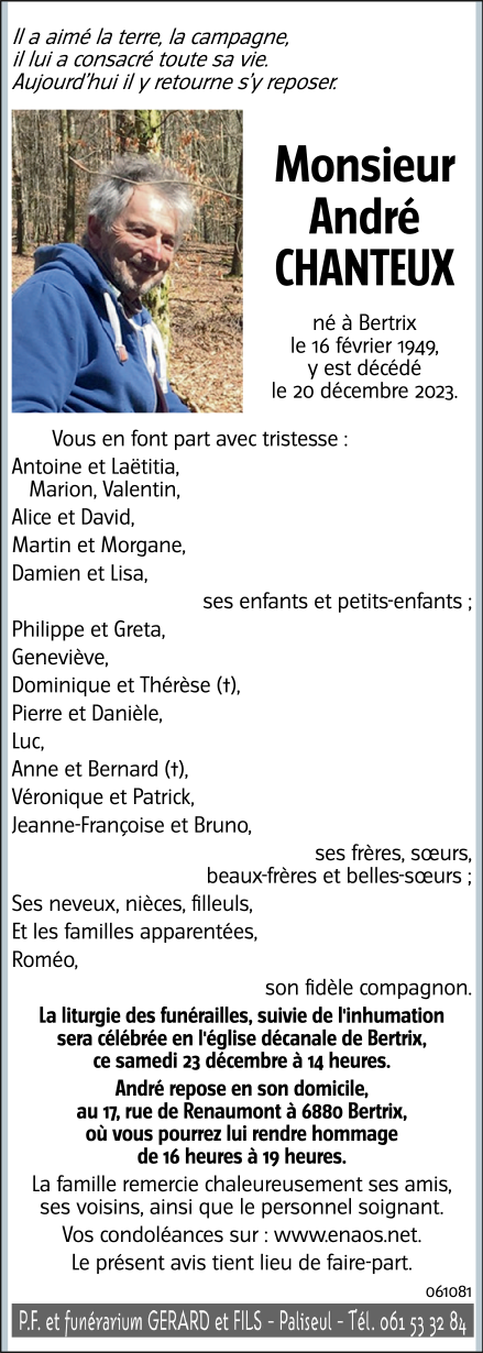 Monsieur André CHANTEUX