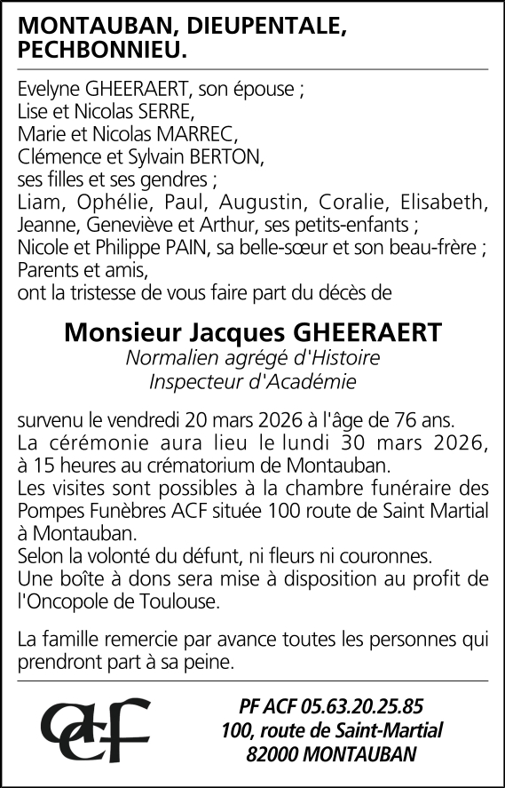 Décédé à Toulouse (31300, France) le vendredi 20 mars 2026 à l'âge de 76 ans