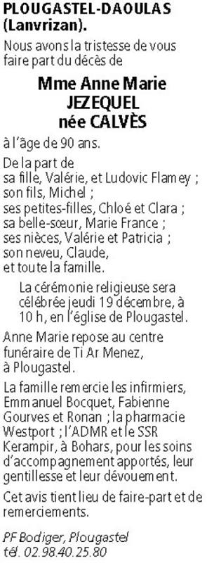 Madame Anne Marie JEZEQUEL née Calvès
