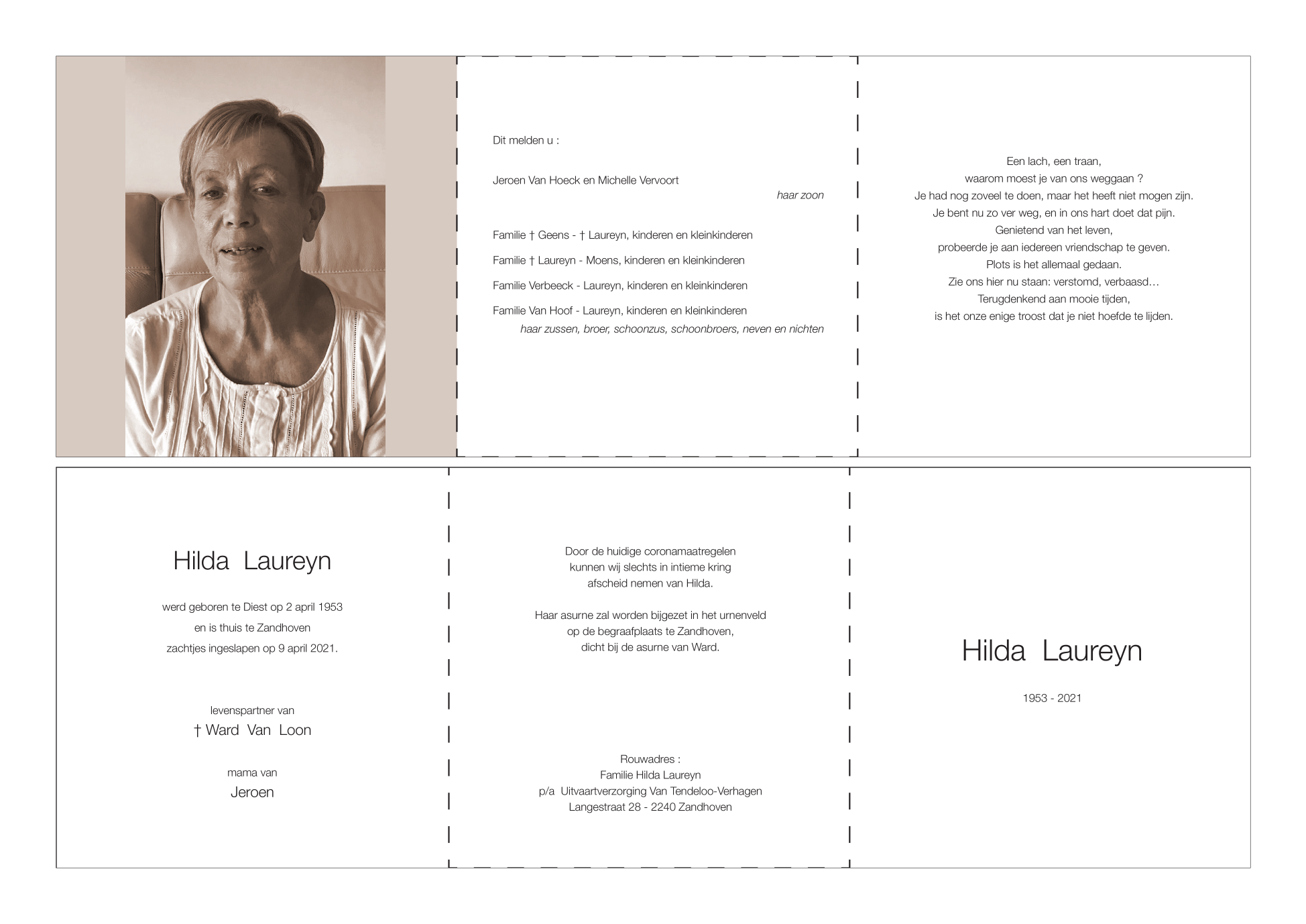 Overleden te Zandhoven (2240) op vrijdag 9 april 2021 op 68-jarige leeftijd