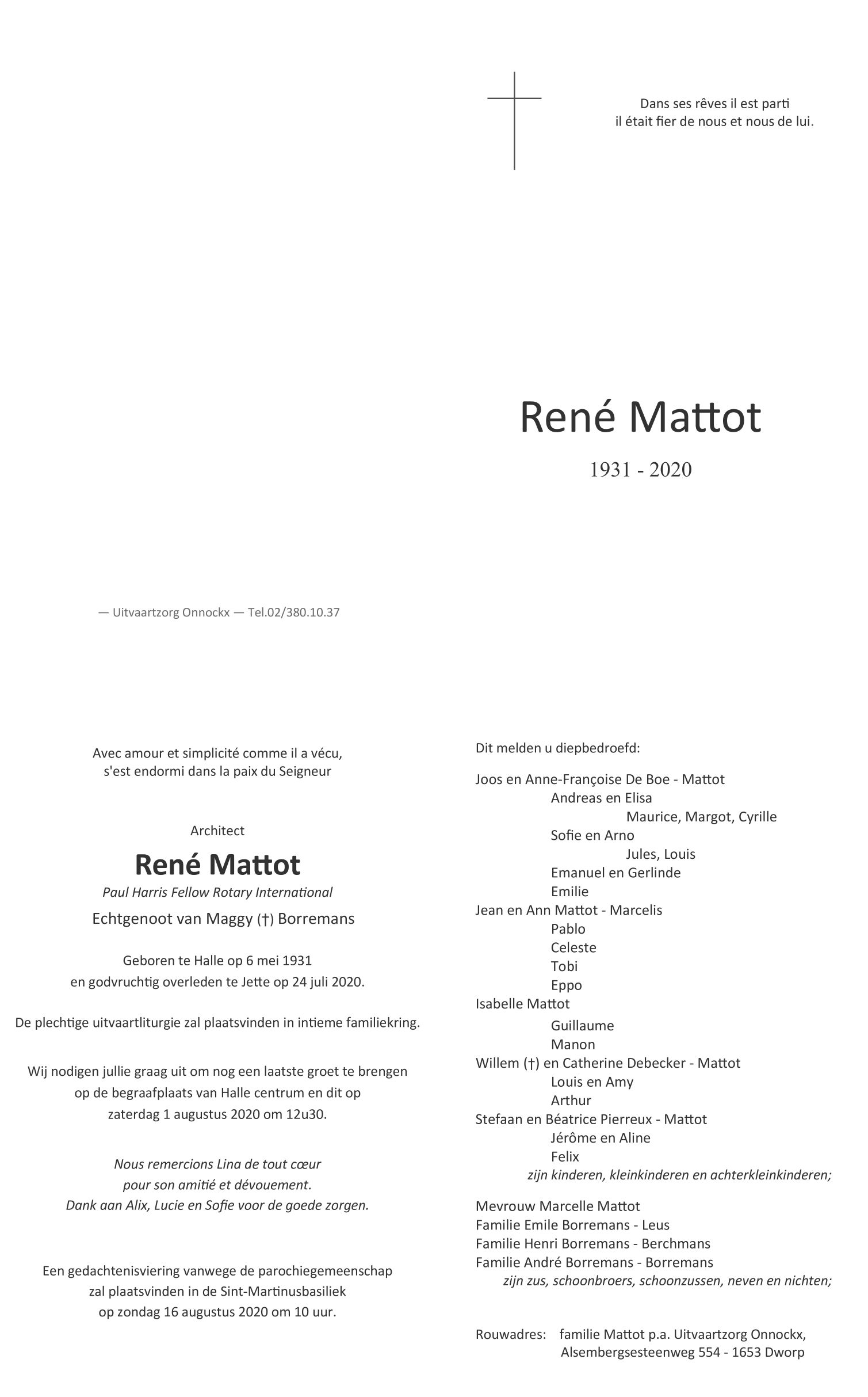 Décédé à Brussel (Jette) (1090) le vendredi 24 juillet 2020 à l'âge de 89 ans