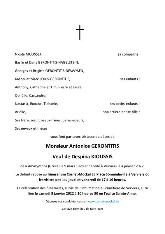 Widower of Madame Despina KIOUSSIS