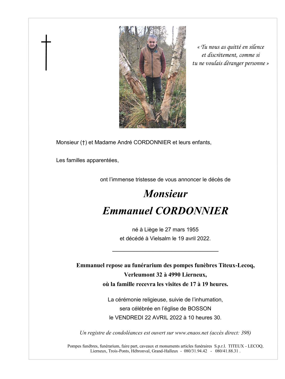 Overleden te Vielsalm (6690) op dinsdag 19 april 2022 op 67-jarige leeftijd