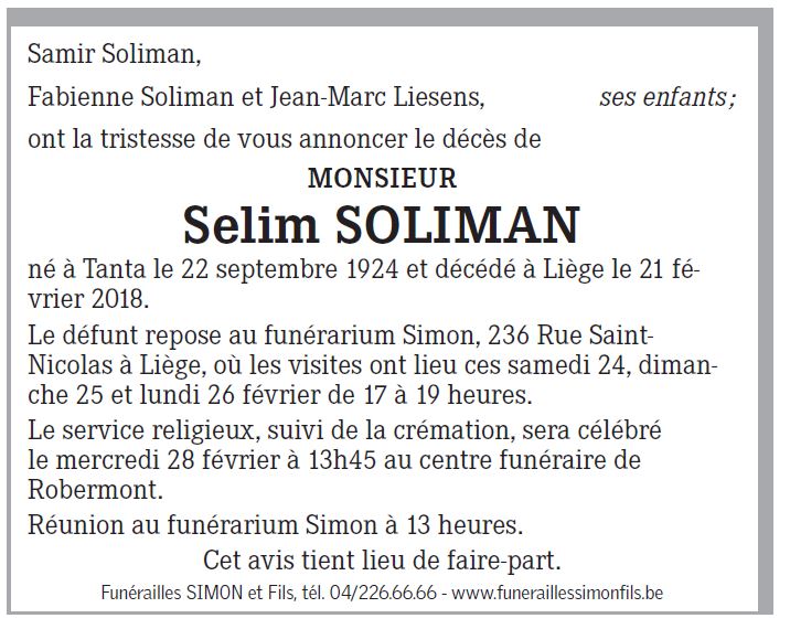 Died in Liège (4000) on 21 February 2018 at the age of 93 years