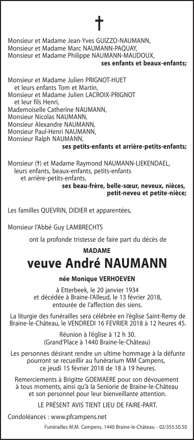 Died in Braine-l'Alleud (1420) on 13 February 2018 at the age of 84 years
