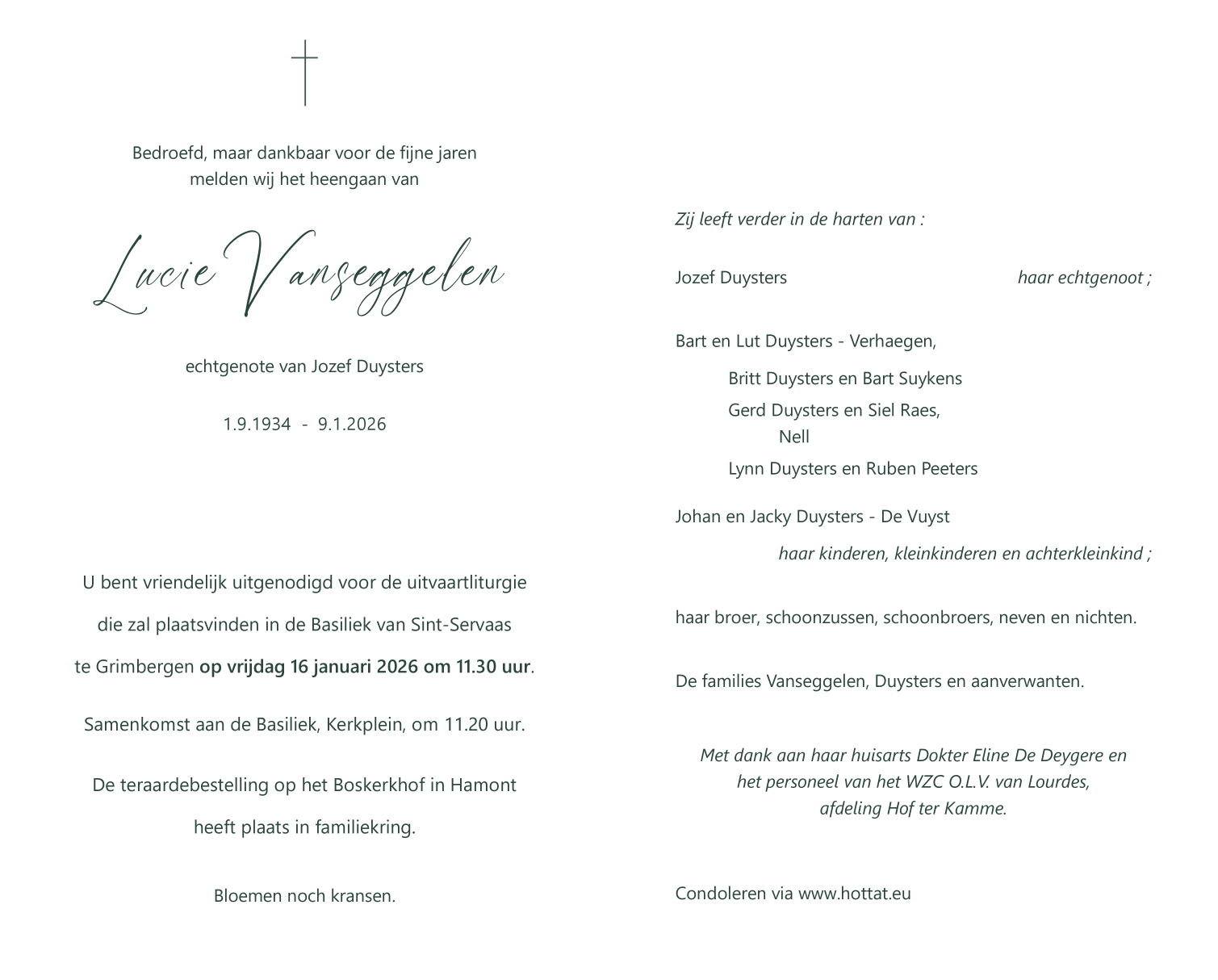 Décédée à Erps-Kwerps (3071) le vendredi 9 janvier 2026 à l'âge de 91 ans