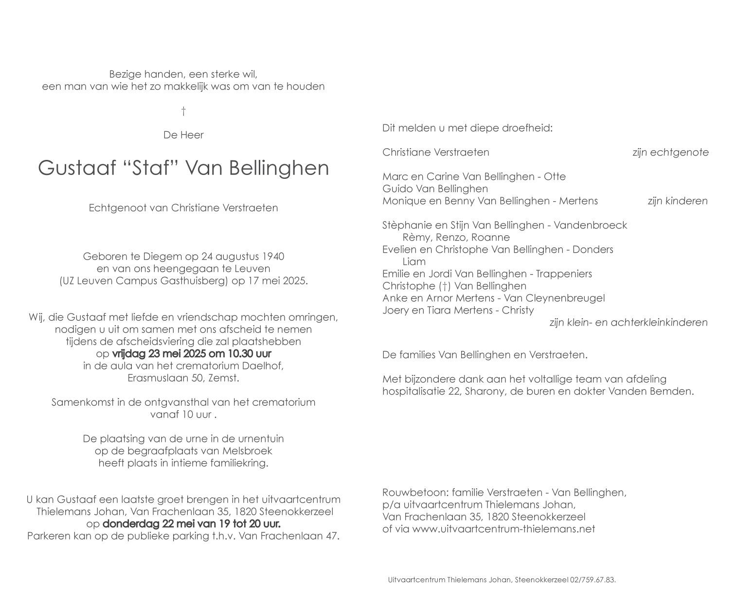 Overleden te Leuven (3000) op zaterdag 17 mei 2025 op 84-jarige leeftijd