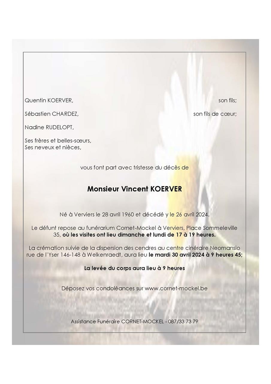 Décédé à Verviers (4800) le vendredi 26 avril 2024 à l'âge de 63 ans