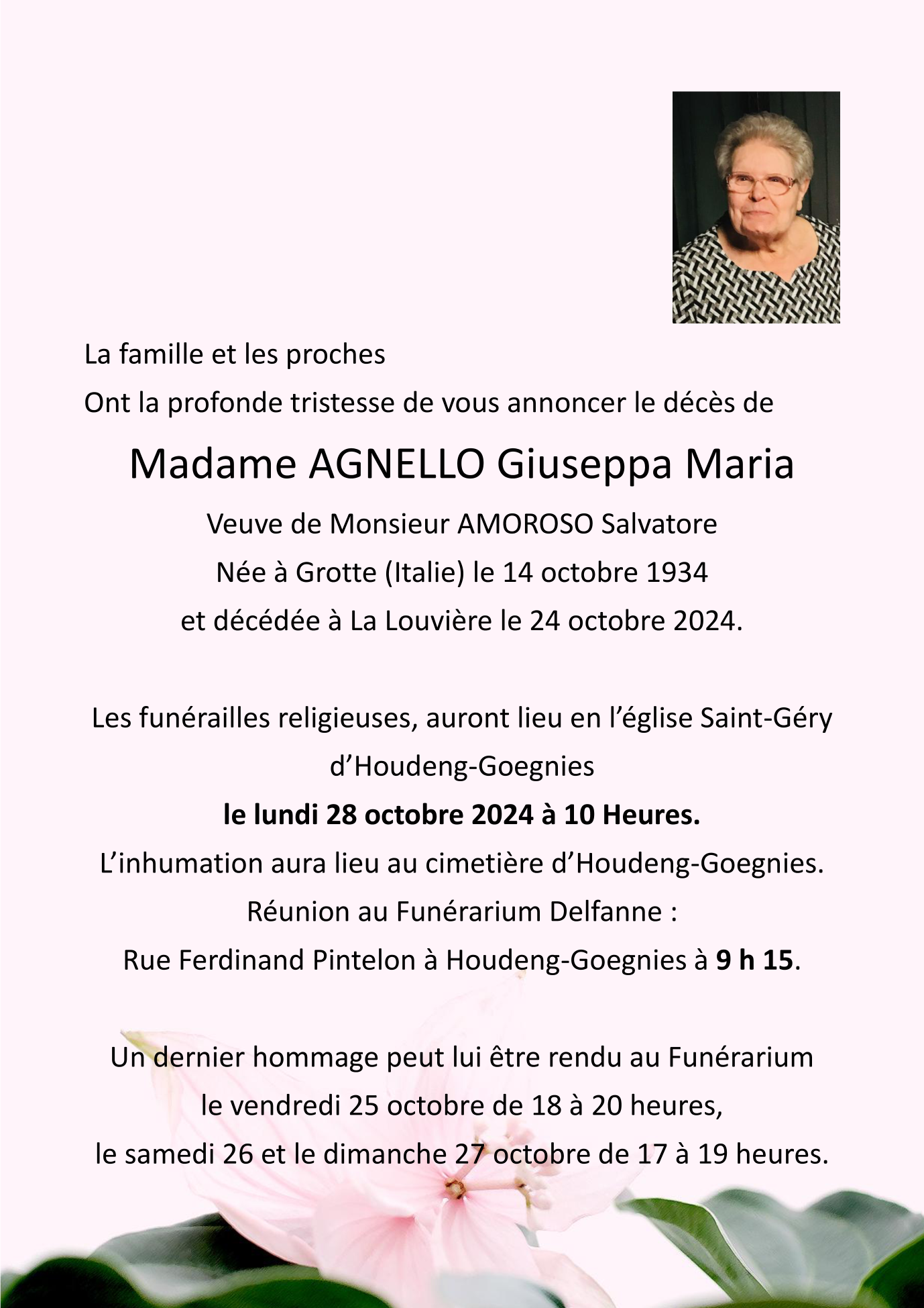 Weduwe van Monsieur Salvatore AMOROSO