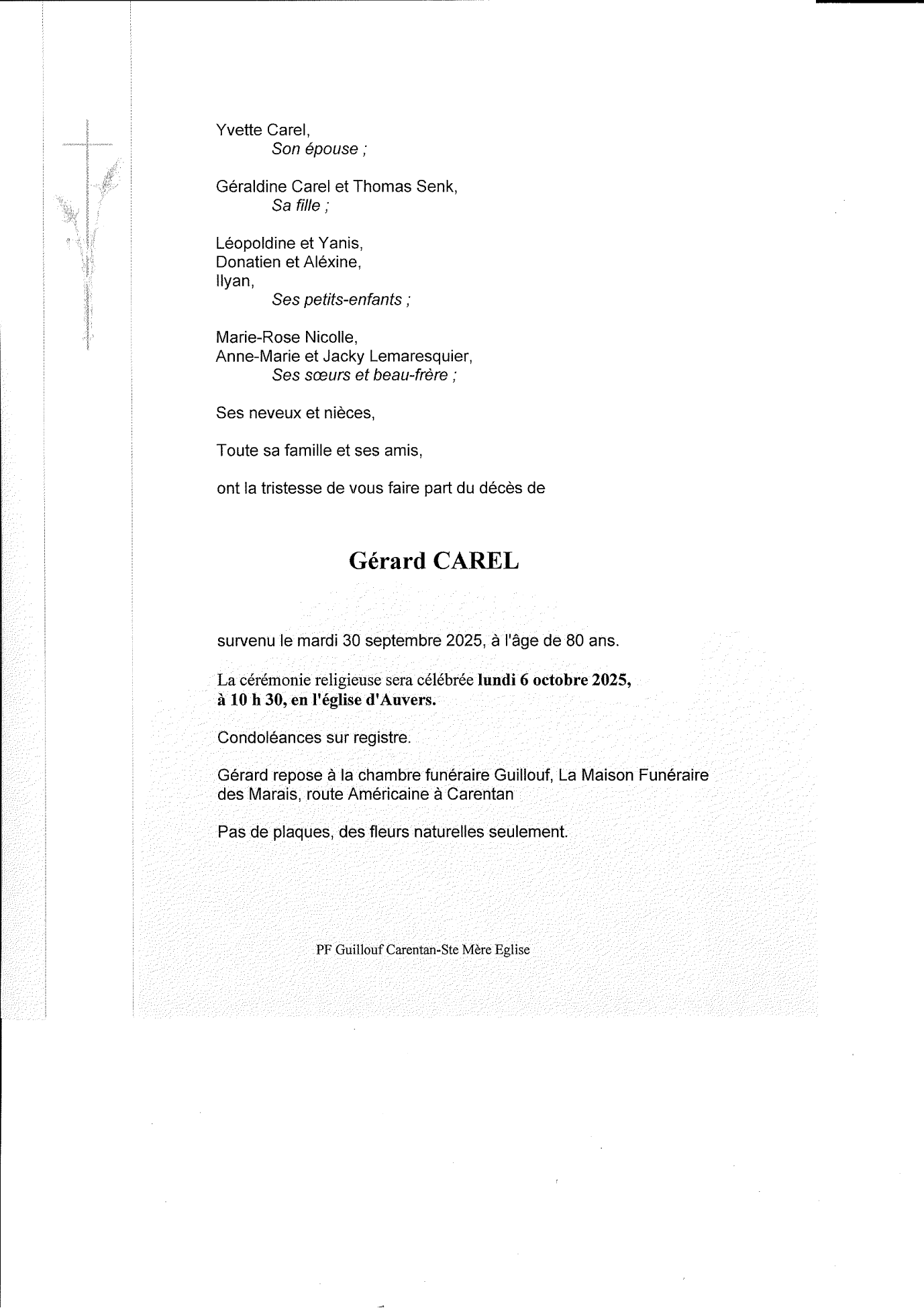 Décédé à Saint-Lô (50000, France) le mardi 30 septembre 2025 à l'âge de 80 ans