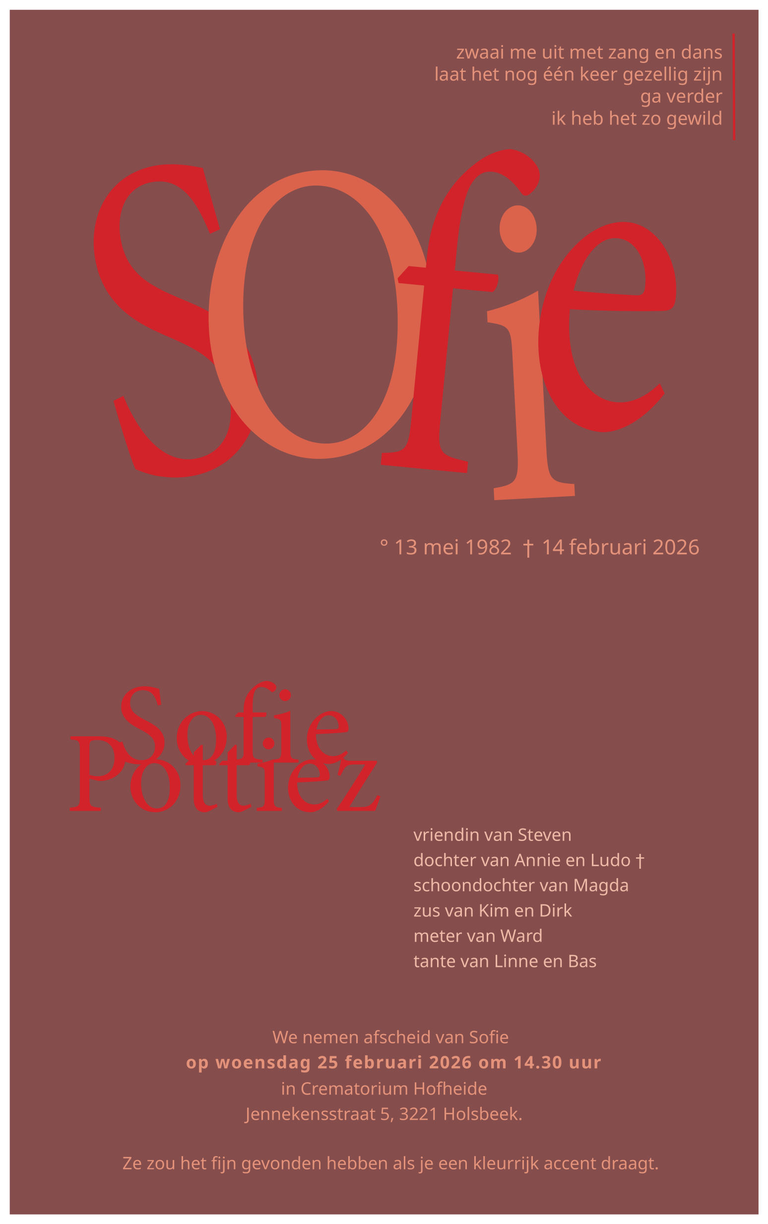 Décédée à Oud-Heverlee (3050) le samedi 14 février 2026 à l'âge de 43 ans