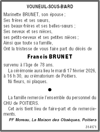 Décédé à Poitiers (86000, France) le mercredi 11 février 2026 à l'âge de 78 ans
