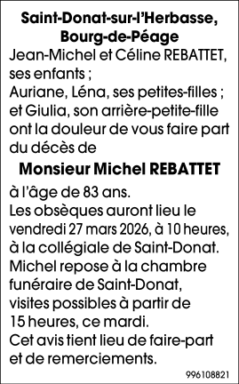 Décédé à Romans-sur-Isère (26100, France) le lundi 23 mars 2026 à l'âge de 83 ans