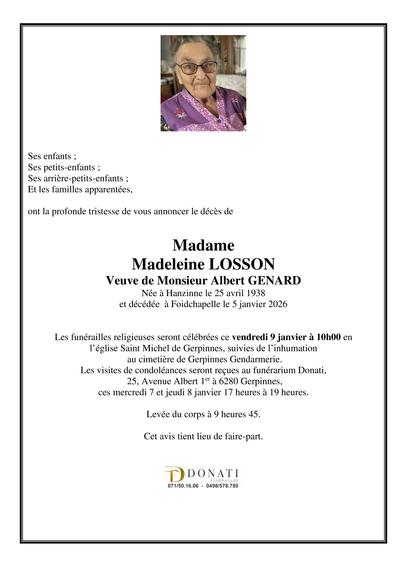 Died in Froidchapelle (6440) on 05 January 2026 at the age of 87 years