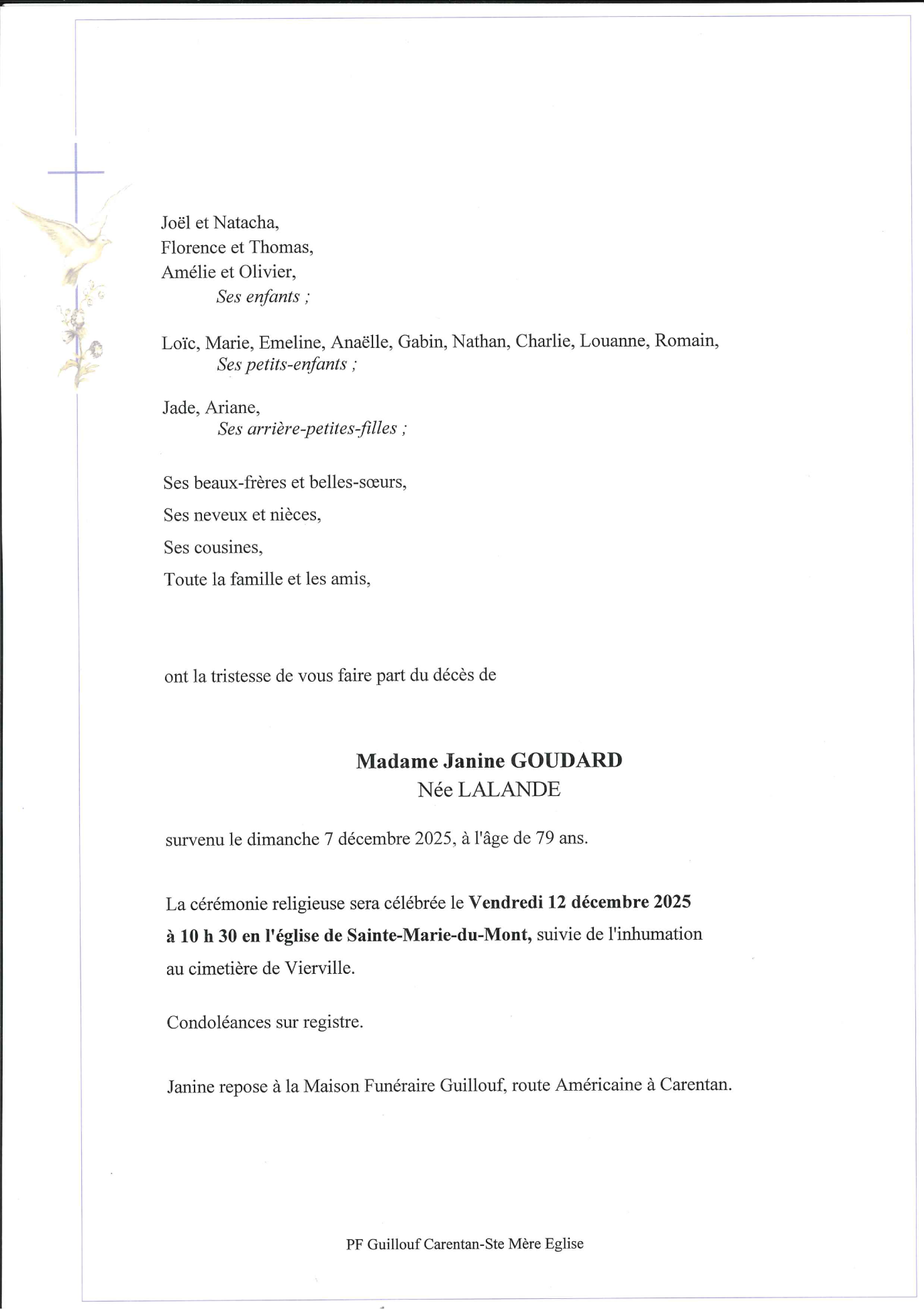 Décédée à Saint-Lô (50000, France) le dimanche 7 décembre 2025 à l'âge de 79 ans