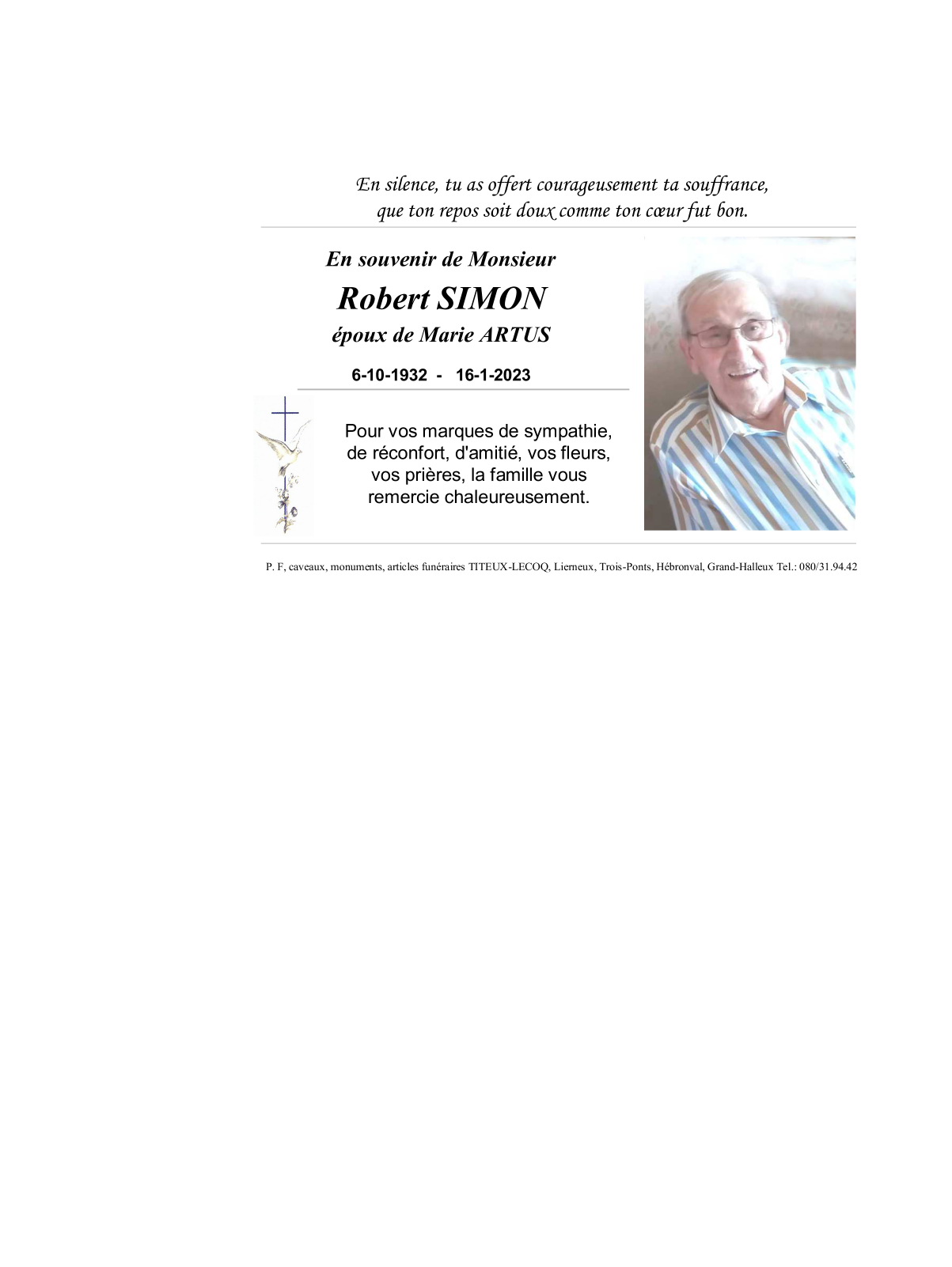 Overleden te Stavelot (4970) op maandag 16 januari 2023 op 90-jarige leeftijd