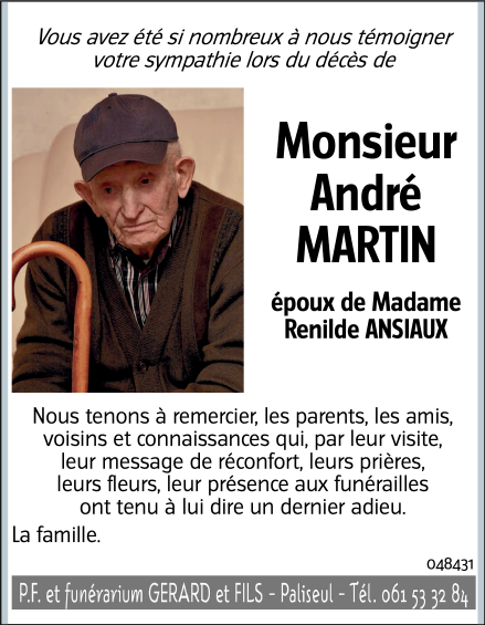 Died in Anloy (6890) on 23 April 2023 at the age of 88 years