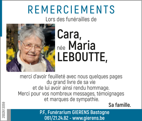 Décédée à Bastogne (6600) le vendredi 27 février 2026 à l'âge de 85 ans