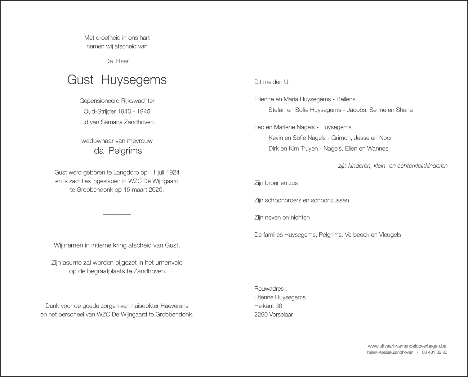 Died in Grobbendonk (2280) on 15 March 2020 at the age of 95 years