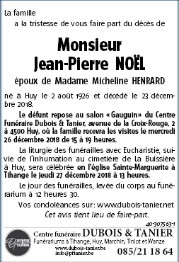 Died in Waremme (4300) on 23 December 2018 at the age of 92 years