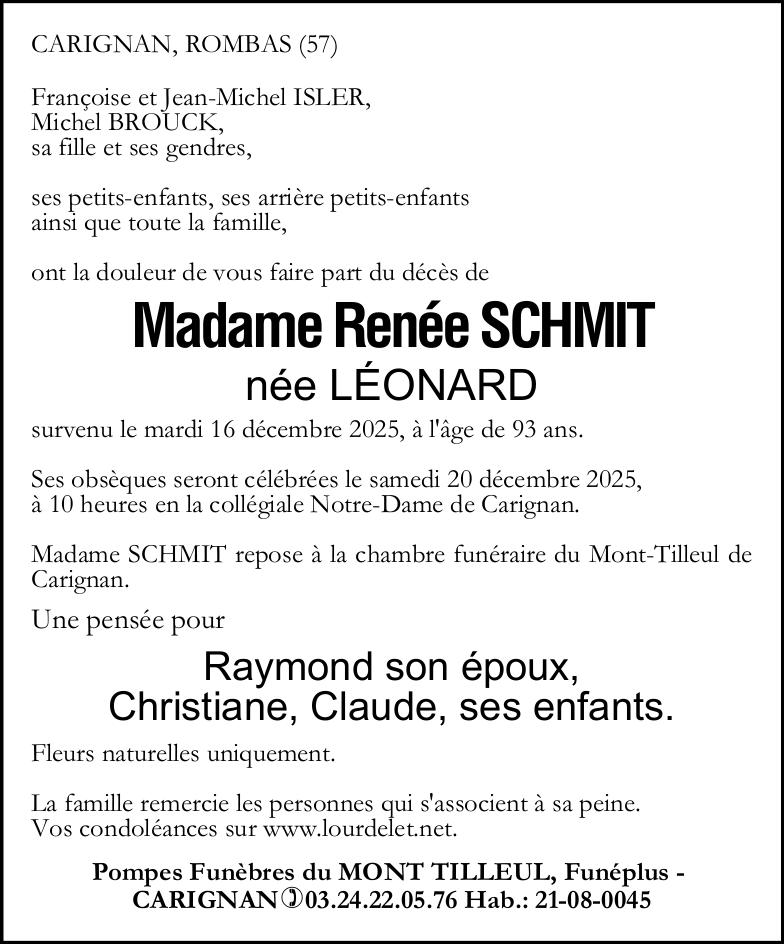 Madame Renée SCHMIT née LÉONARD