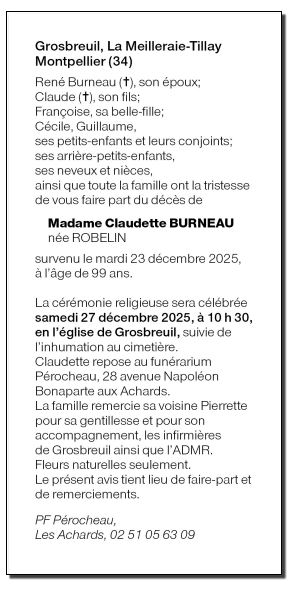 Overleden te Les Sables d'Olonne (85100, Frankrijk) op dinsdag 23 december 2025 op 99-jarige leeftijd