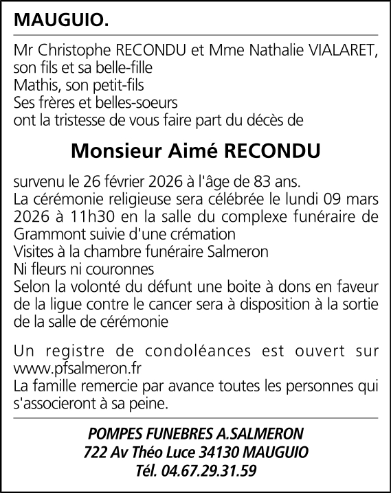 Died in Mauguio (34130, France) on 26 February 2026 at the age of 83 years