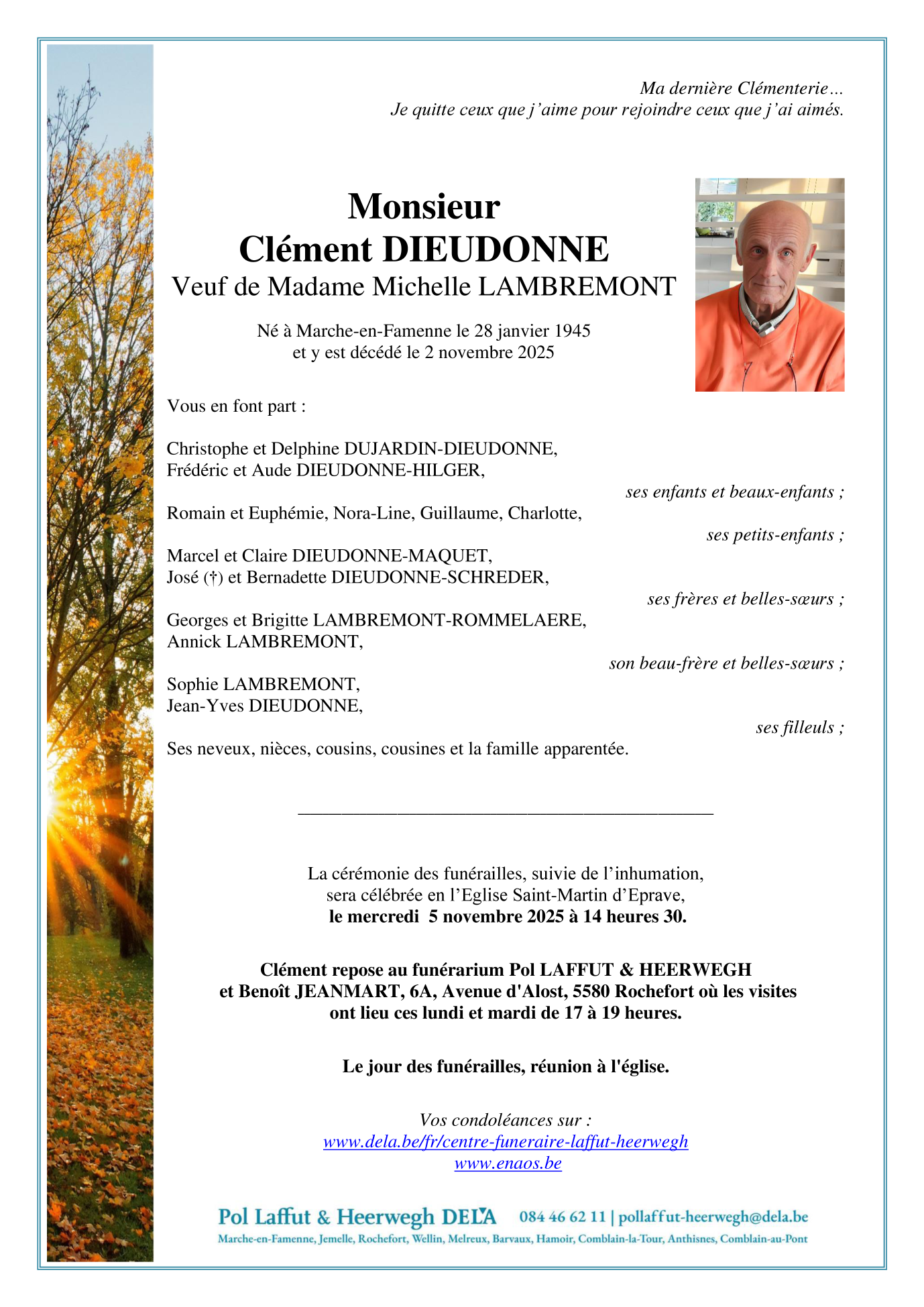Décédé à Marche-en-Famenne (6900) le dimanche 2 novembre 2025 à l'âge de 80 ans