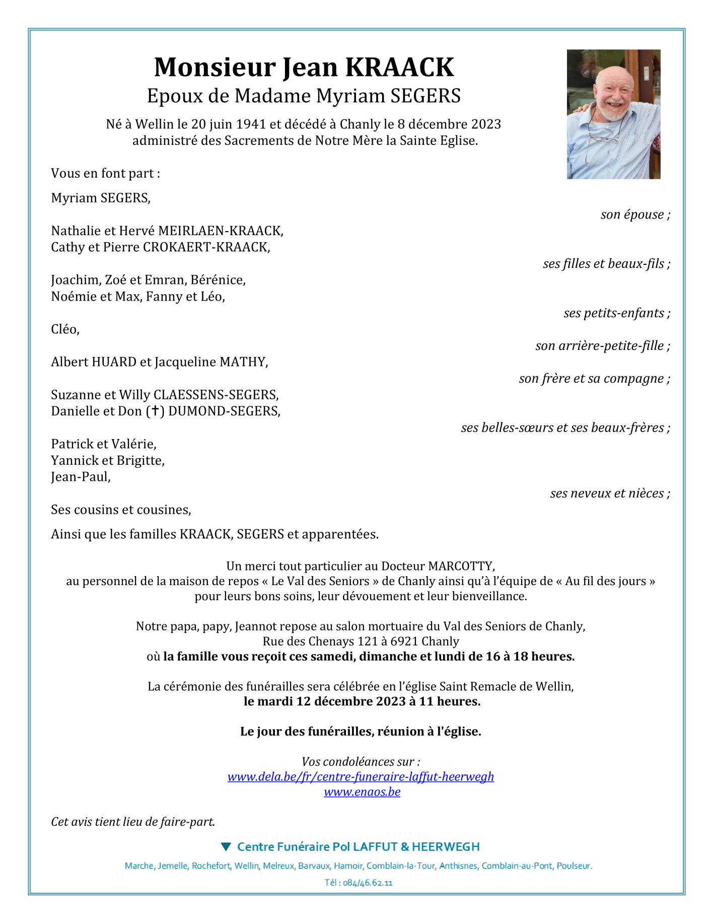 Died in Chanly (6921) on 08 December 2023 at the age of 82 years