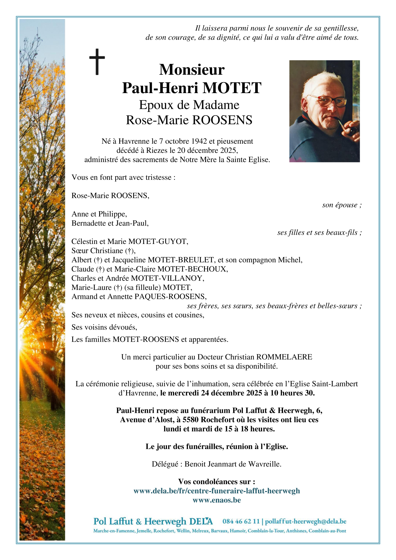 Né à Havrenne (5580) le mercredi 7 octobre 1942