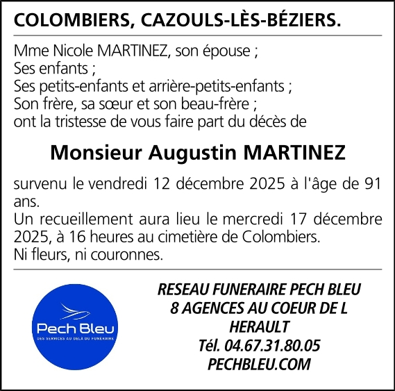 Décédé à Colombiers (34440, France) le vendredi 12 décembre 2025 à l'âge de 91 ans