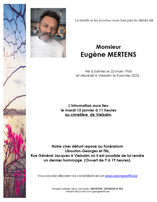 Overleden te Vielsalm (6690) op donderdag 8 januari 2026 op 65-jarige leeftijd