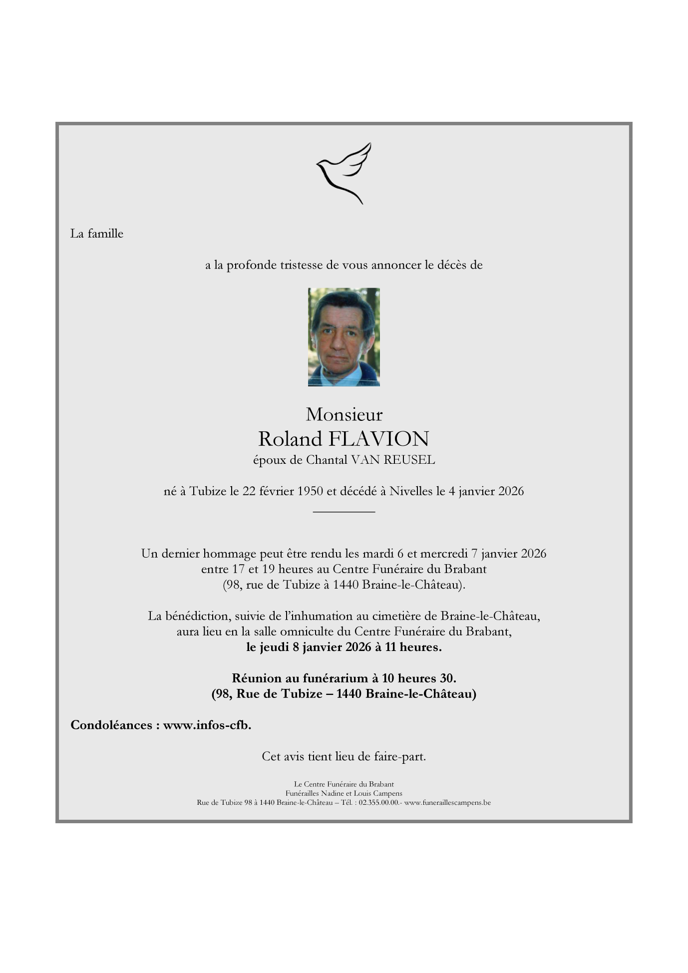 Overleden te Nivelles (1400) op zondag 4 januari 2026 op 75-jarige leeftijd