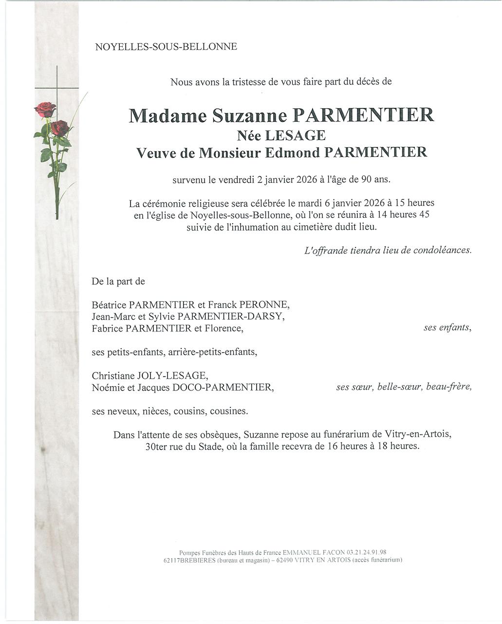 Madame Suzanne, Claire, Marguerite PARMENTIER née LESAGE