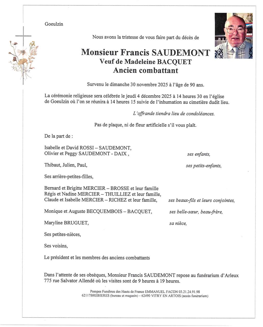Décédé à Dechy (59187, France) le dimanche 30 novembre 2025 à l'âge de 90 ans