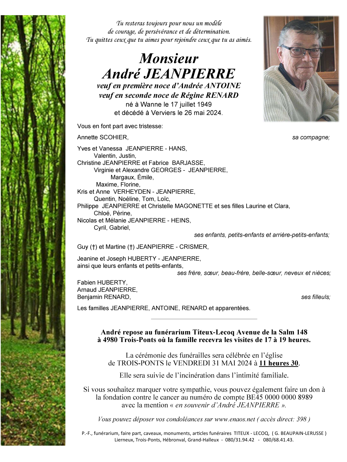 Né à Wanne (4980) le dimanche 17 juillet 1949