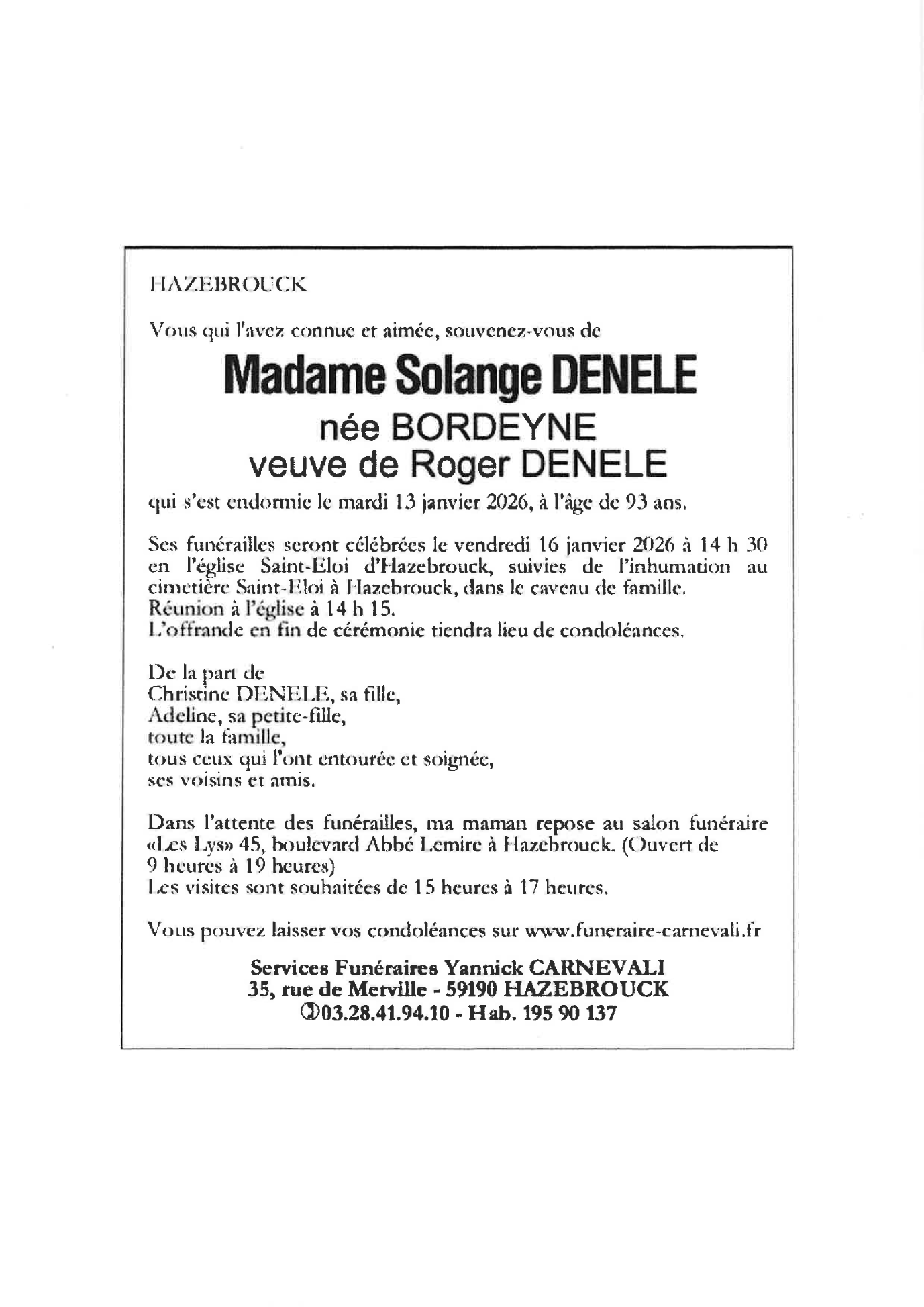 Overleden te Hazebrouck (59190, Frankrijk) op dinsdag 13 januari 2026 op 93-jarige leeftijd