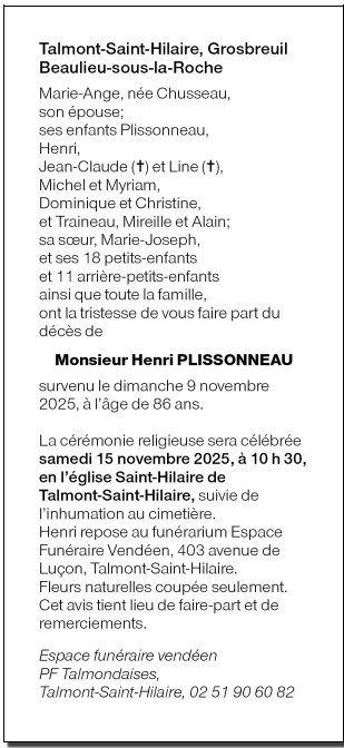 Né à Saint Hilaire de Talmont (85440, France) le dimanche 11 juin 1939