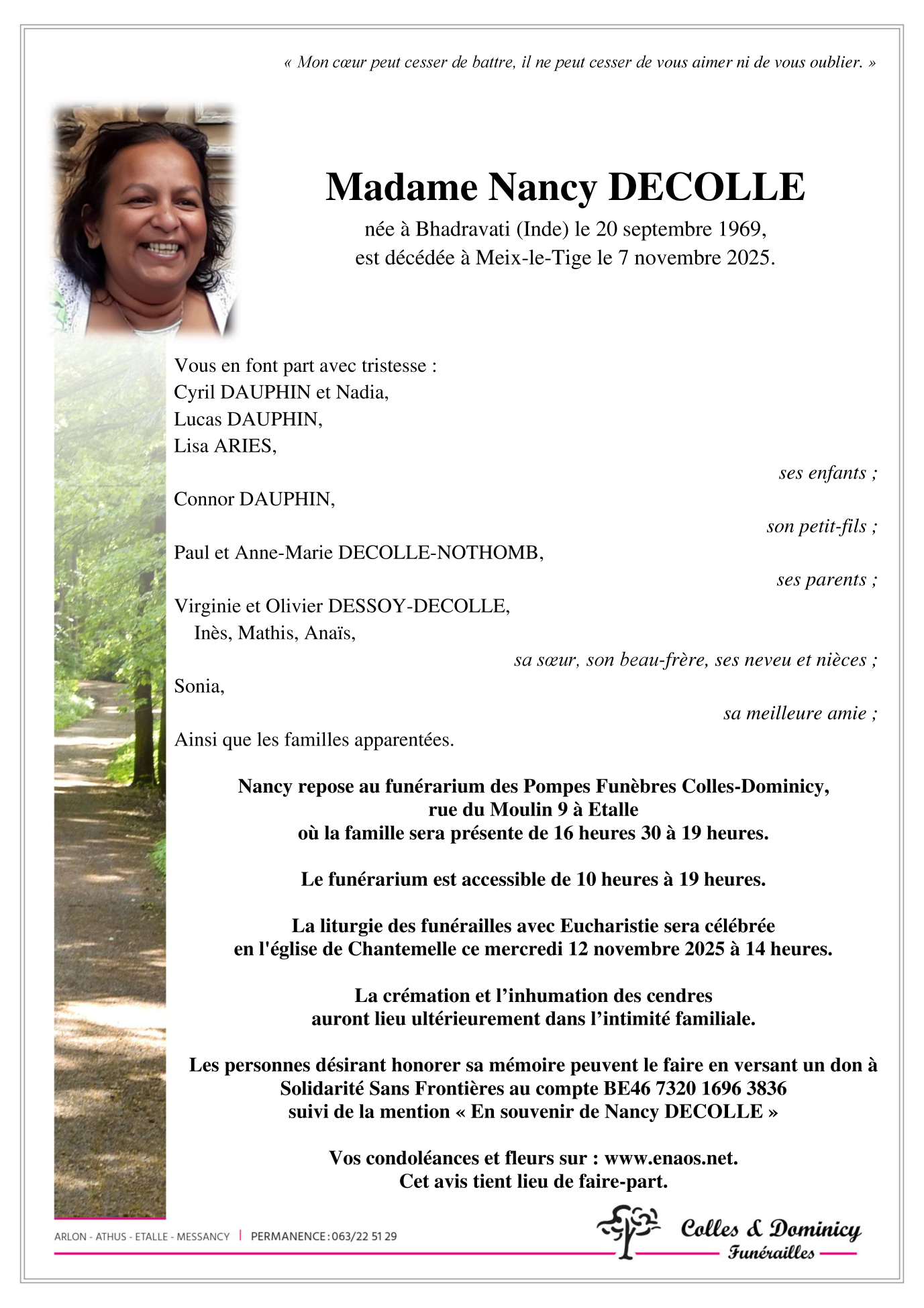 Décédée à Meix-le-Tige (6747) le vendredi 7 novembre 2025 à l'âge de 56 ans