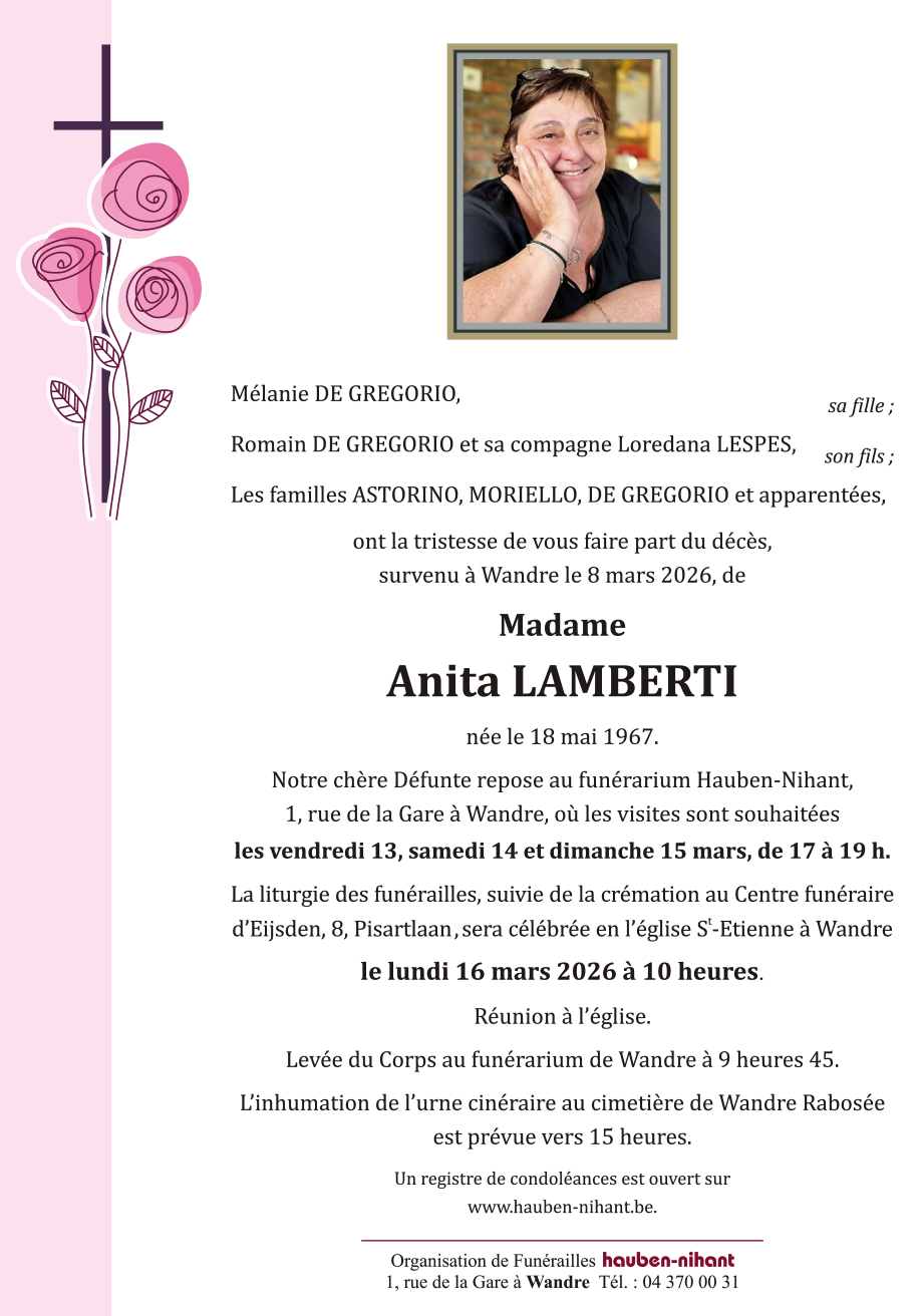 Fallecida en Wandre (4020) el domingo, 8 de marzo de 2026 a la edad de 58 años