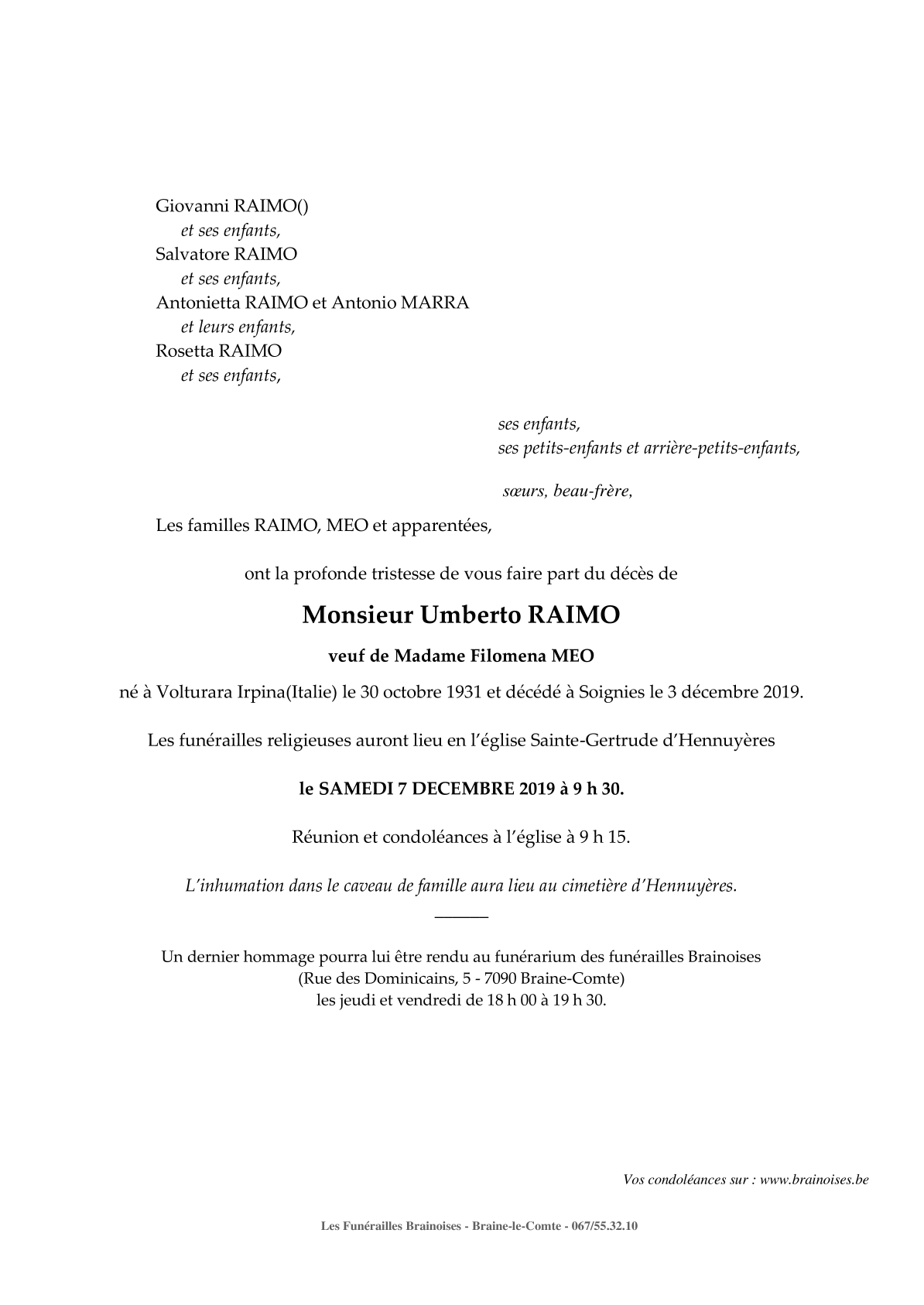 Fallecido en Soignies (7060) el martes, 3 de diciembre de 2019 a la edad de 88 años